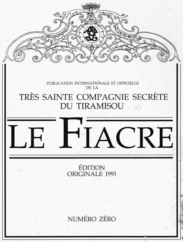 Publié en janvier 1990 dans LE FIACRE REVUE DE LA TRES SAINTE COMPAGNIE SECRETE DU TIRAMISOU